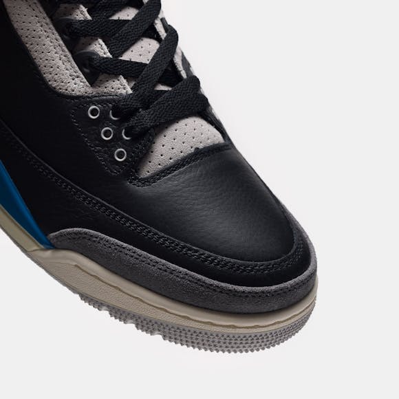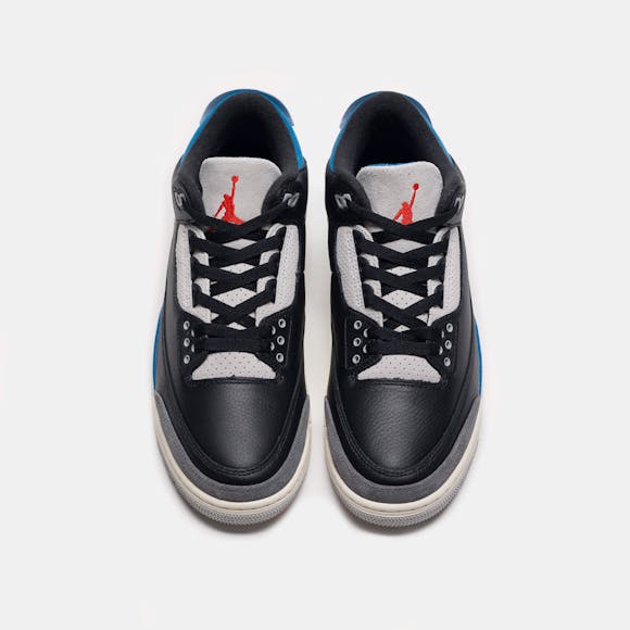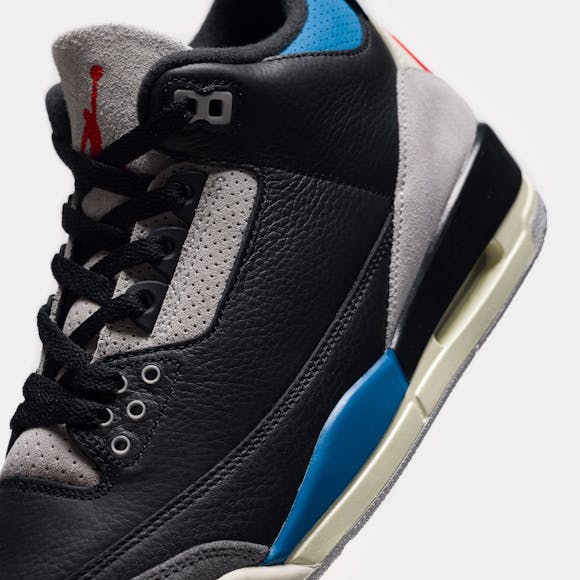 Jordan Brand men’s limited edition black, "Chile Red", and "Neutral Grey" tumbled leather mid top retro basketball sneaker. The first Air Jordan conceptualized by legendary footwear designer Tinker Hatfield, the Air Jordan 3 was originally released in 1988 and was the first Jordan model to feature the iconic Jumpman logo and elephant print (developed at MJ’s request). The Air Jordan 3 marked the debut of the Mars Blackmon commercials, starring Jordan and writer, director, and actor Spike Lee, who reprised his role from his 1986 film She’s Gotta Have It. Jordan also wore the Air Jordan 3 to win the NBA’s 1988 MVP and Defense Player of the Year awards, as well as the All-Star Dunk Contest. Features: Lace-up front Tumbled leather upper Rounded toe Padded tongue and collar Foam midsole with visible heel Air-sole unit Rubber outsole White textile lining Fabrication: Style #IB8967-004 Imported Fit & Sizing: Standard fit US men’s sizing