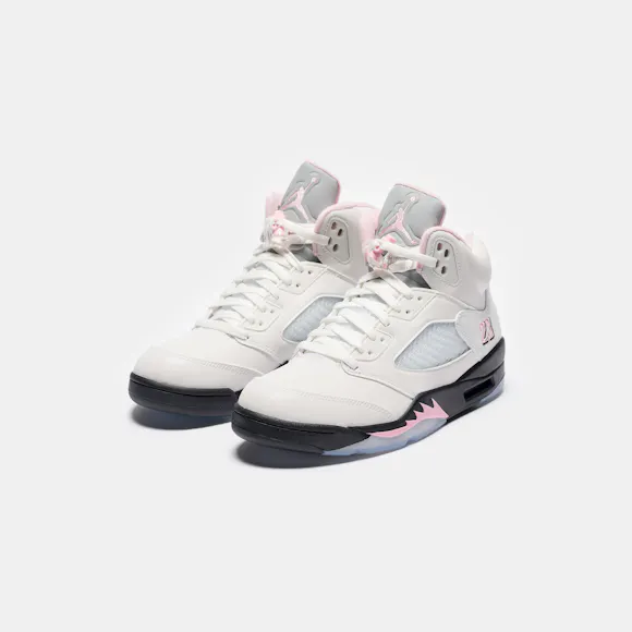Air Jordan 5 Retro Sneaker in White/Med Soft Pink/Black