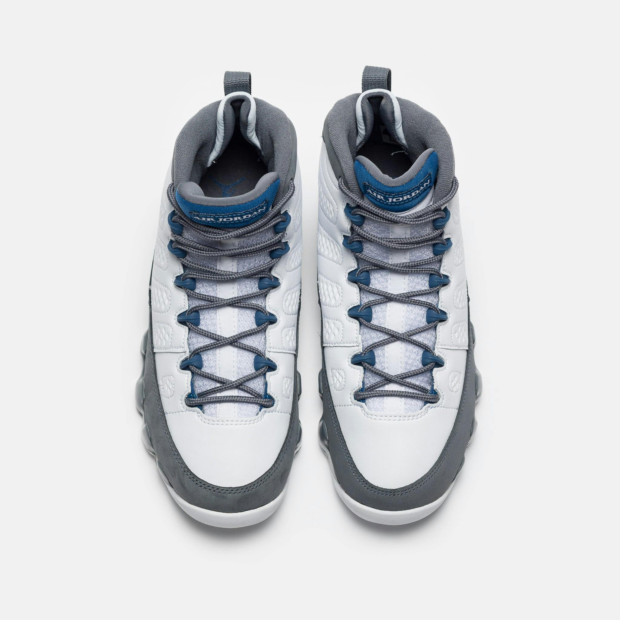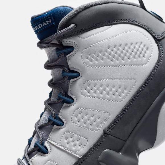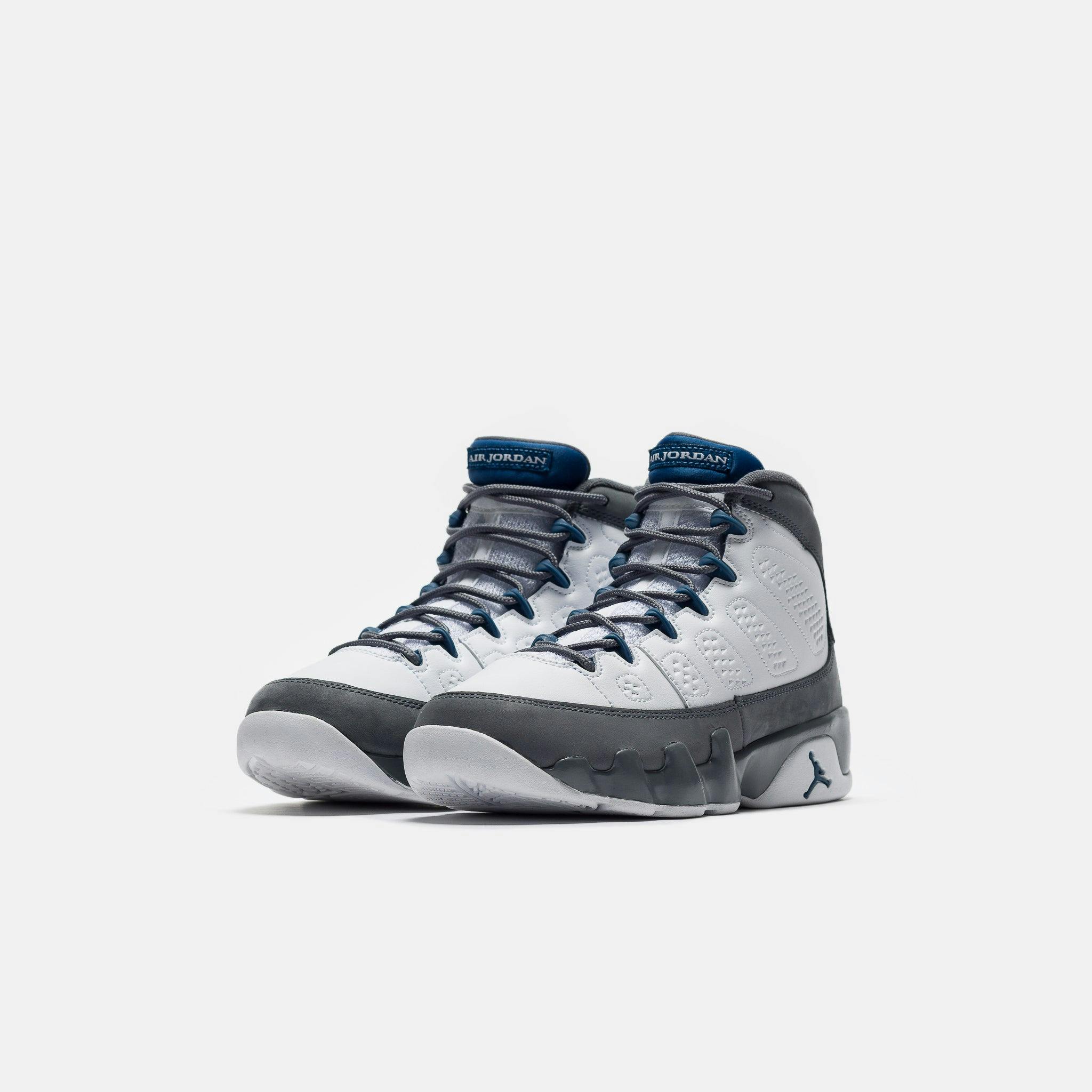 Air Jordan 9 Retro Grade School Sneaker in White/French Blue/Flint