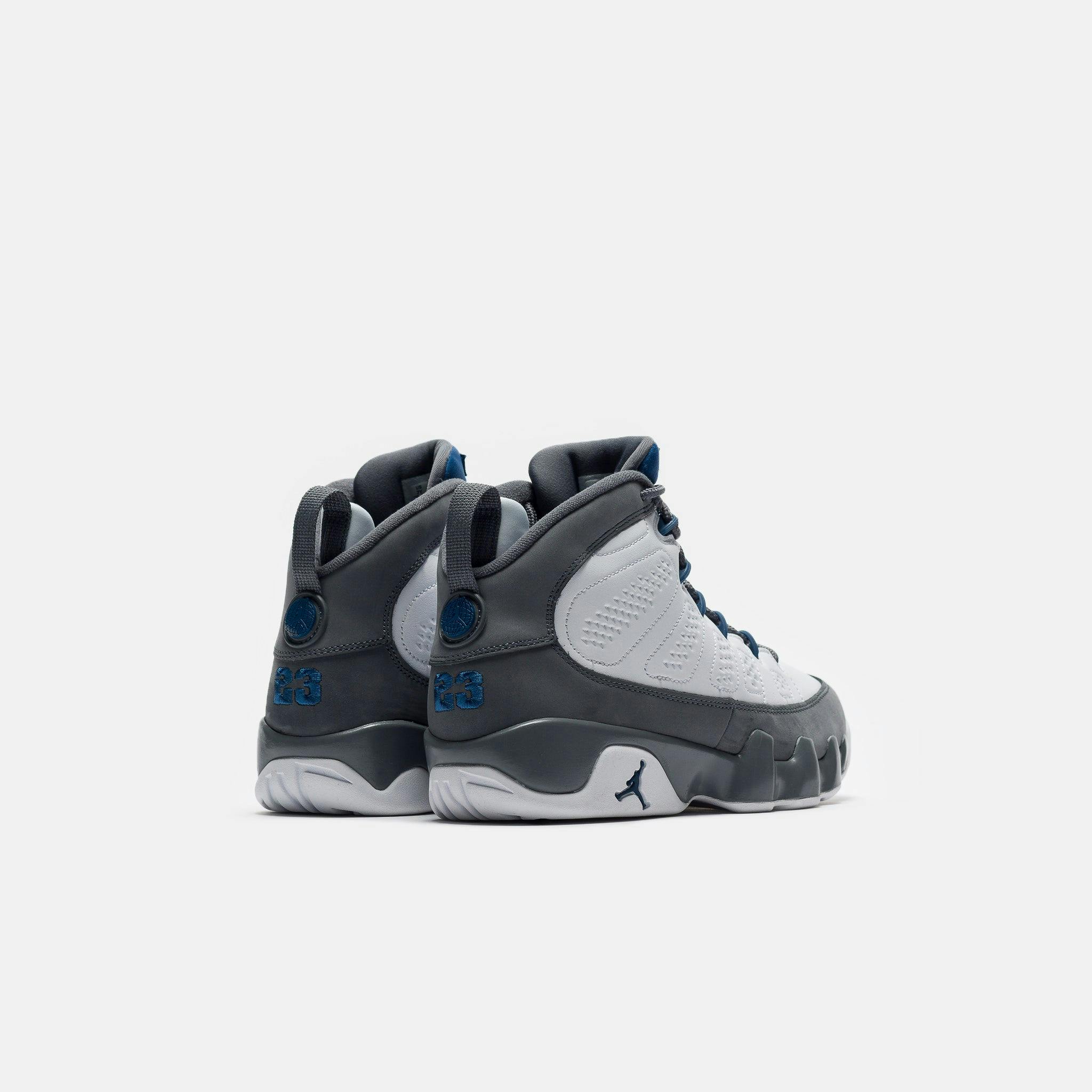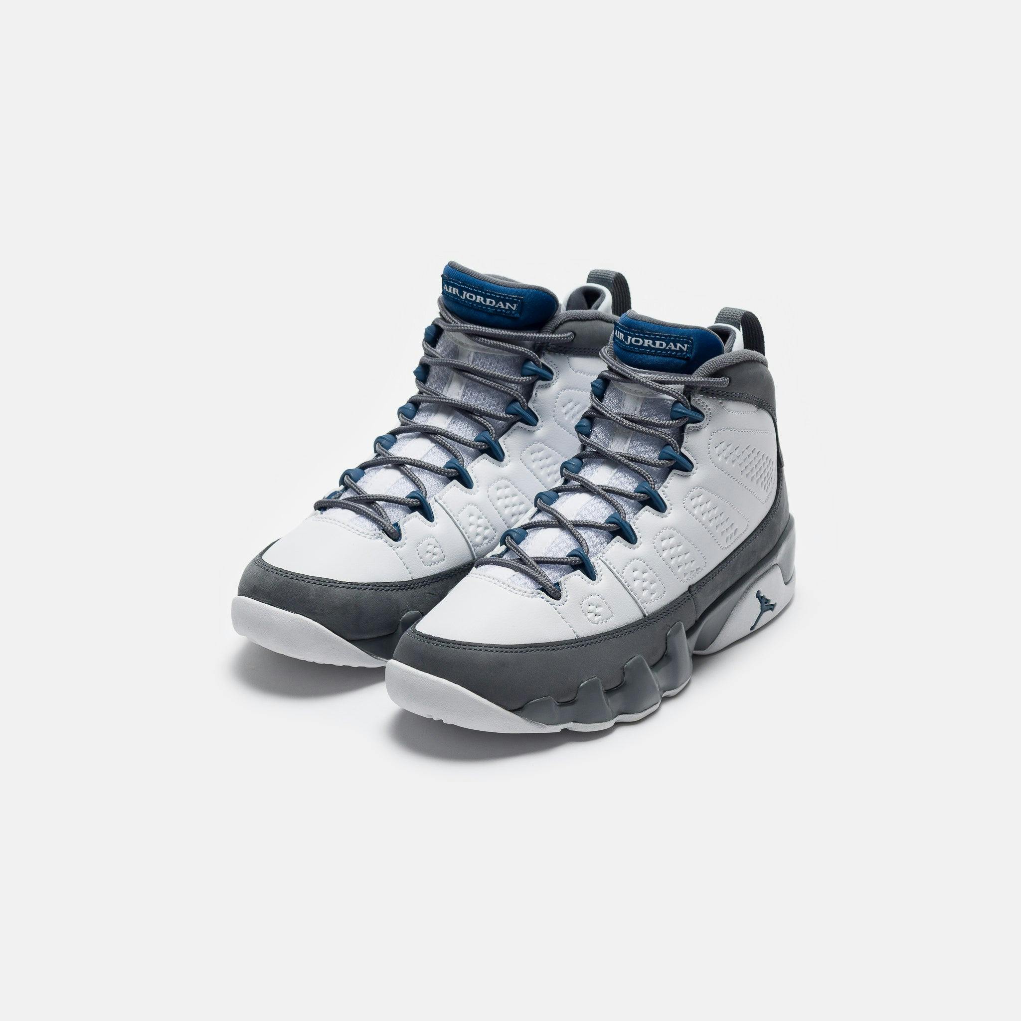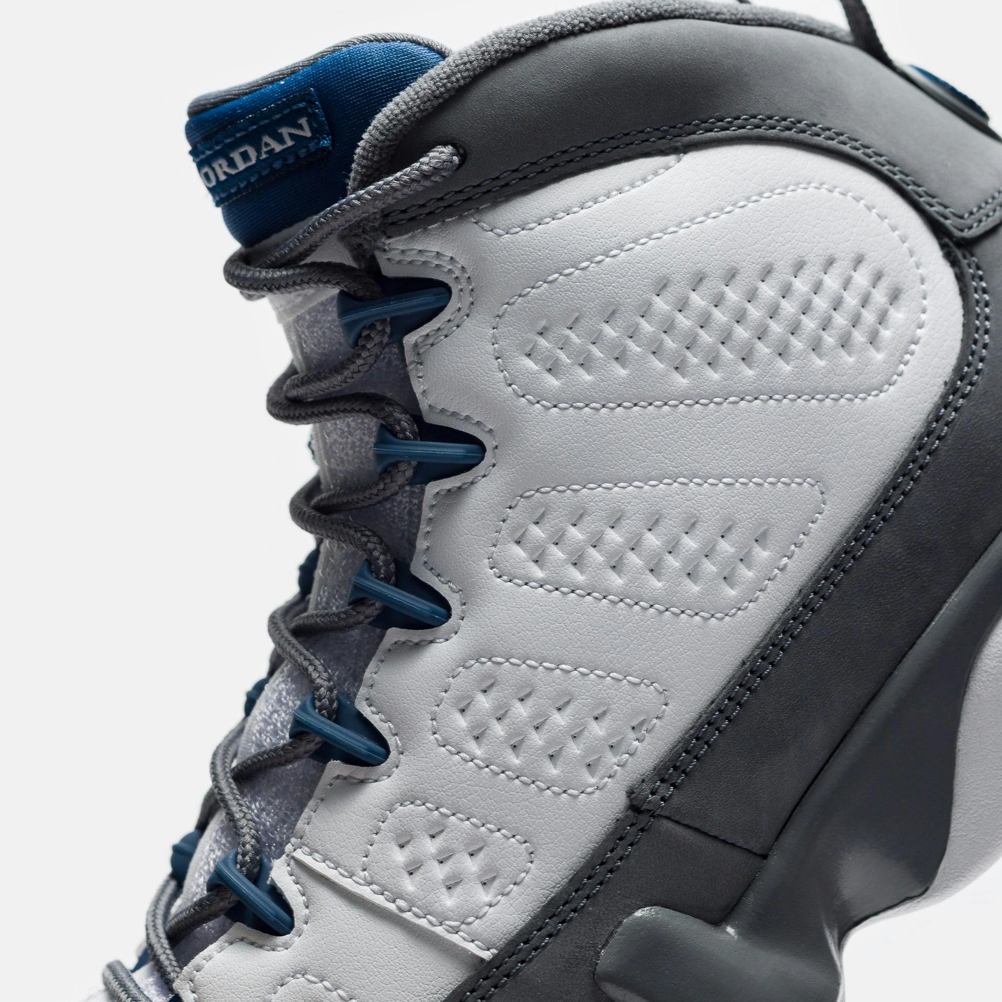 Air Jordan 9 Retro Grade School Sneaker in White/French Blue/Flint