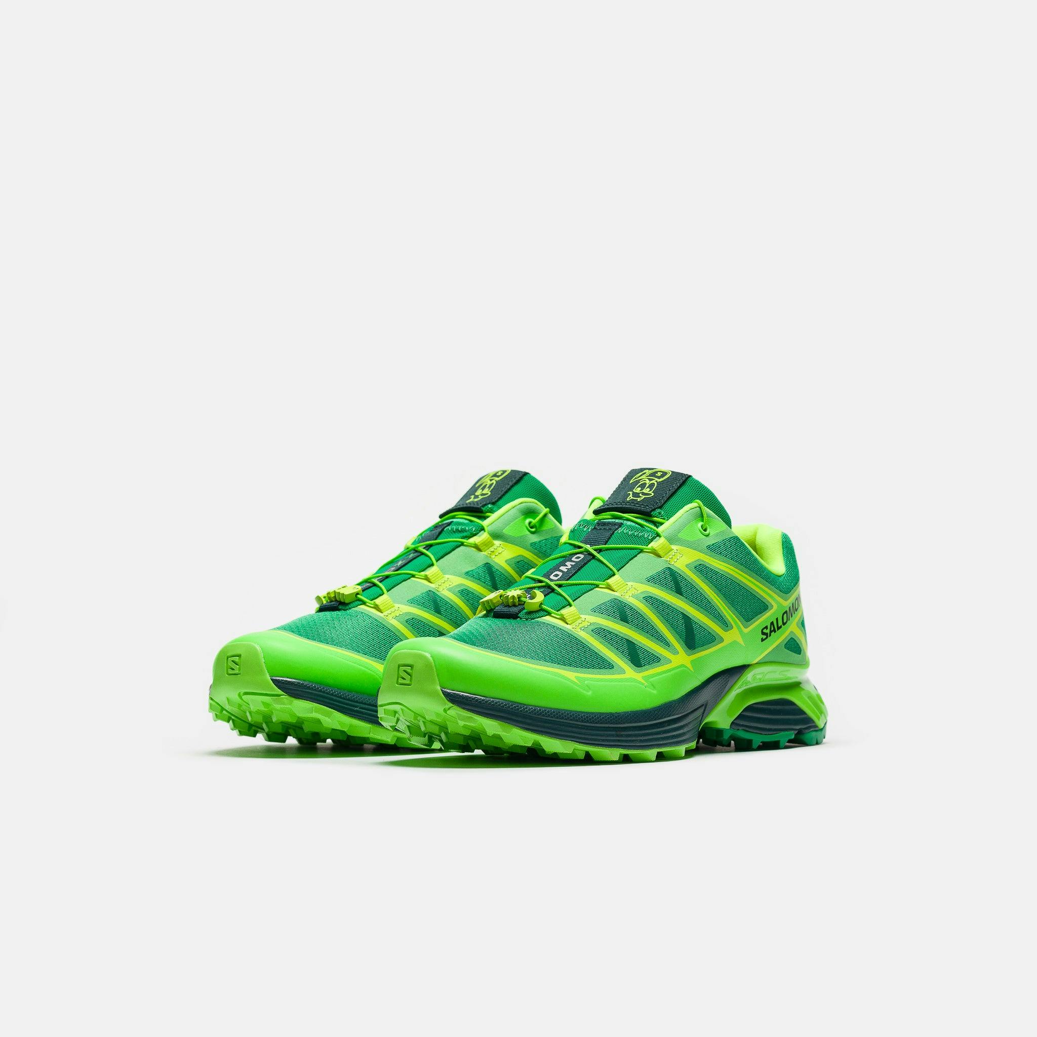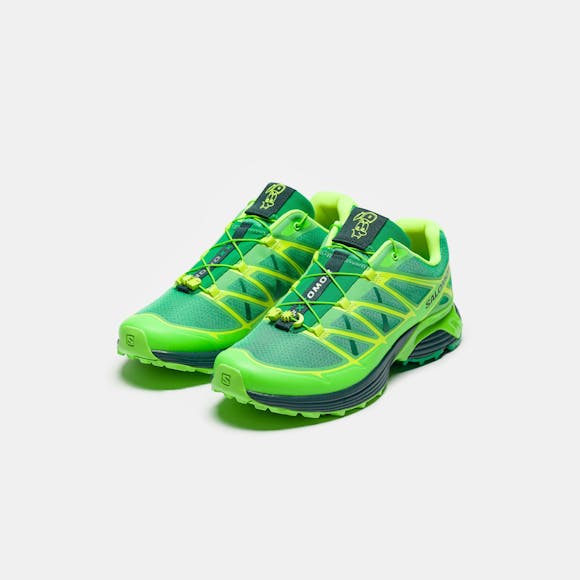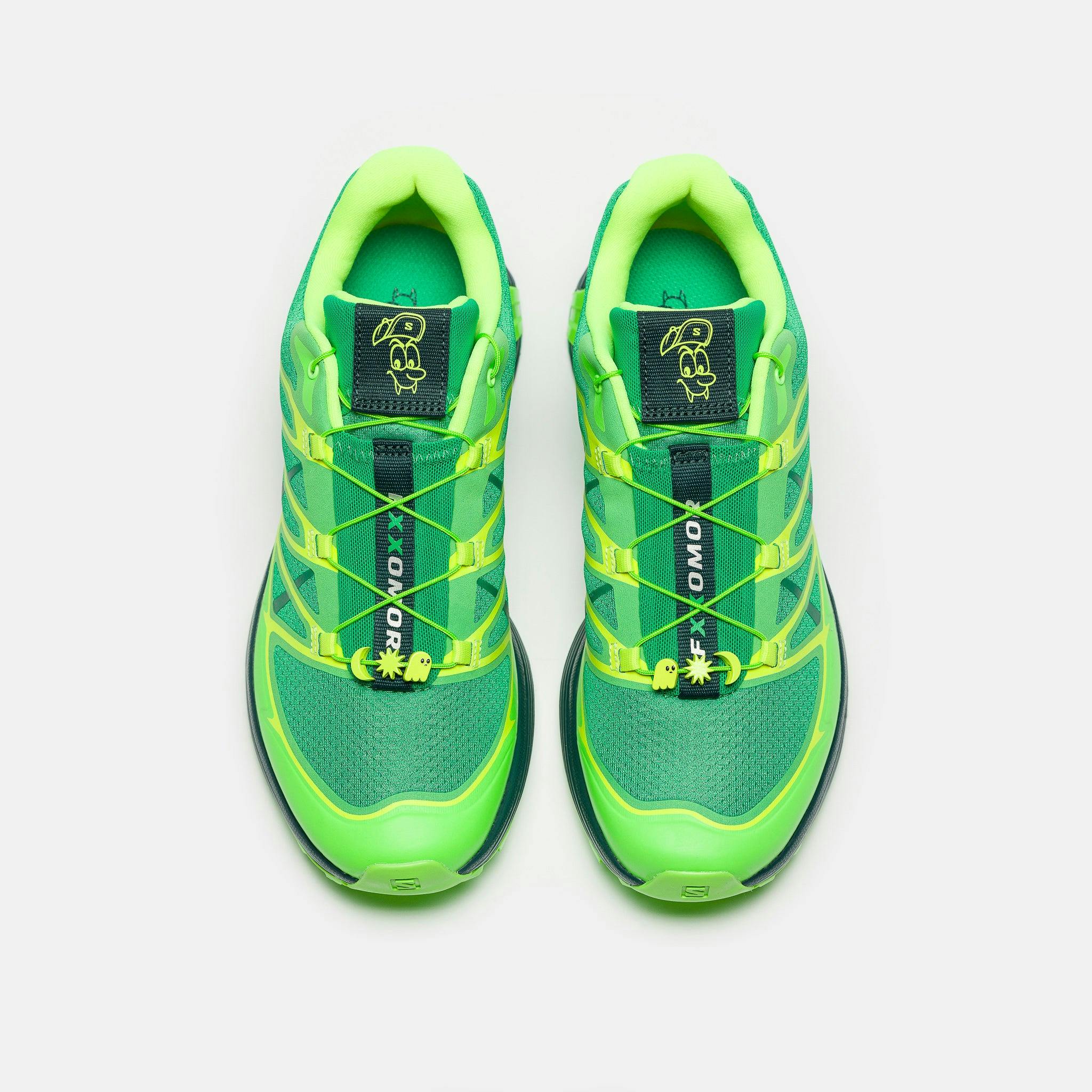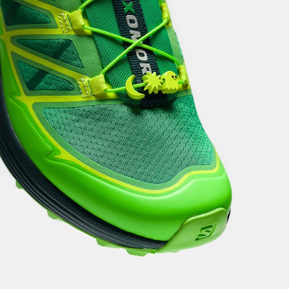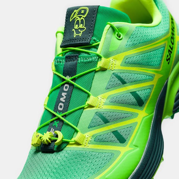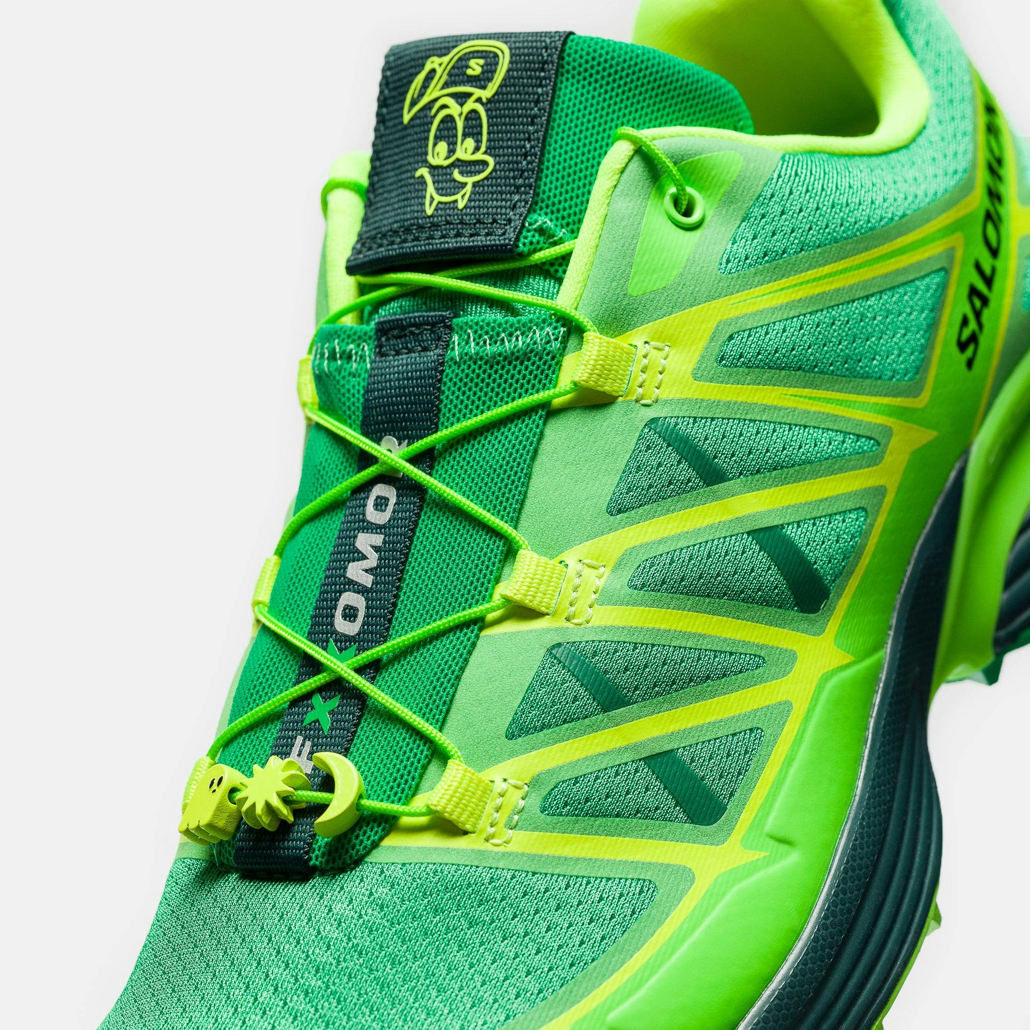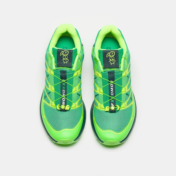 SALOMON x Feid unisex limited edition standard fit “Bright Green", "Green Gecko", and "Safety Yellow" synthetic low top trail running sneaker. Features: Quicklace™ pull-cord lacing system Synthetic and textile upper Rounded toe SensiFit™ construction cradles your foot from the laces to sole for secure, customized comfort Removable OrthoLite® insole Contagrip® TA tread puts sharp lugs and durable traction underfoot Fabrication: Style # L49120300 Made in China Fit & Sizing: Standard fit US men’s sizing Buy 1 size down for US women’s sizing