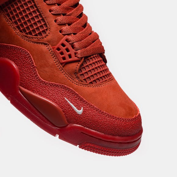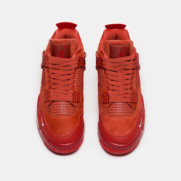 Jordan men's limited edition standard fit Air Jordan 4 retro in "Firewood" orange, "Sail" white, and "Cinnabar" red. BMX virtuoso Nigel Sylvester and Jordan Brand team up on this charged edition of the AJ4. In the worlds of sport, culture and philanthropy, the "Brick by Brick" colorway is a testament to Nigel's belief in tenacity and progress. His commitment to push boundaries, make the tricks bigger and the world better inspired the fierce Firewood Orange leather upper. The Cinnabar underlays and accents pulse against the vibrant upper and a clean Sail midsole brings balance to the bold design. Staying true to the original AJ4 from '89, it comes equipped with mesh-inspired details and floating eyestays. As a nod to Nigel's passion, the traditional "Nike Air" heel logo is replaced with "Bike Air." Lace up, build community and forge your own path. Features: Leather Upper Lace Up Closure TPU Details Air Cushioning Fabrication: Synthetic leather upper Rubber outsole Style # HF4340-800 Fit: Standard fit US men's sizing