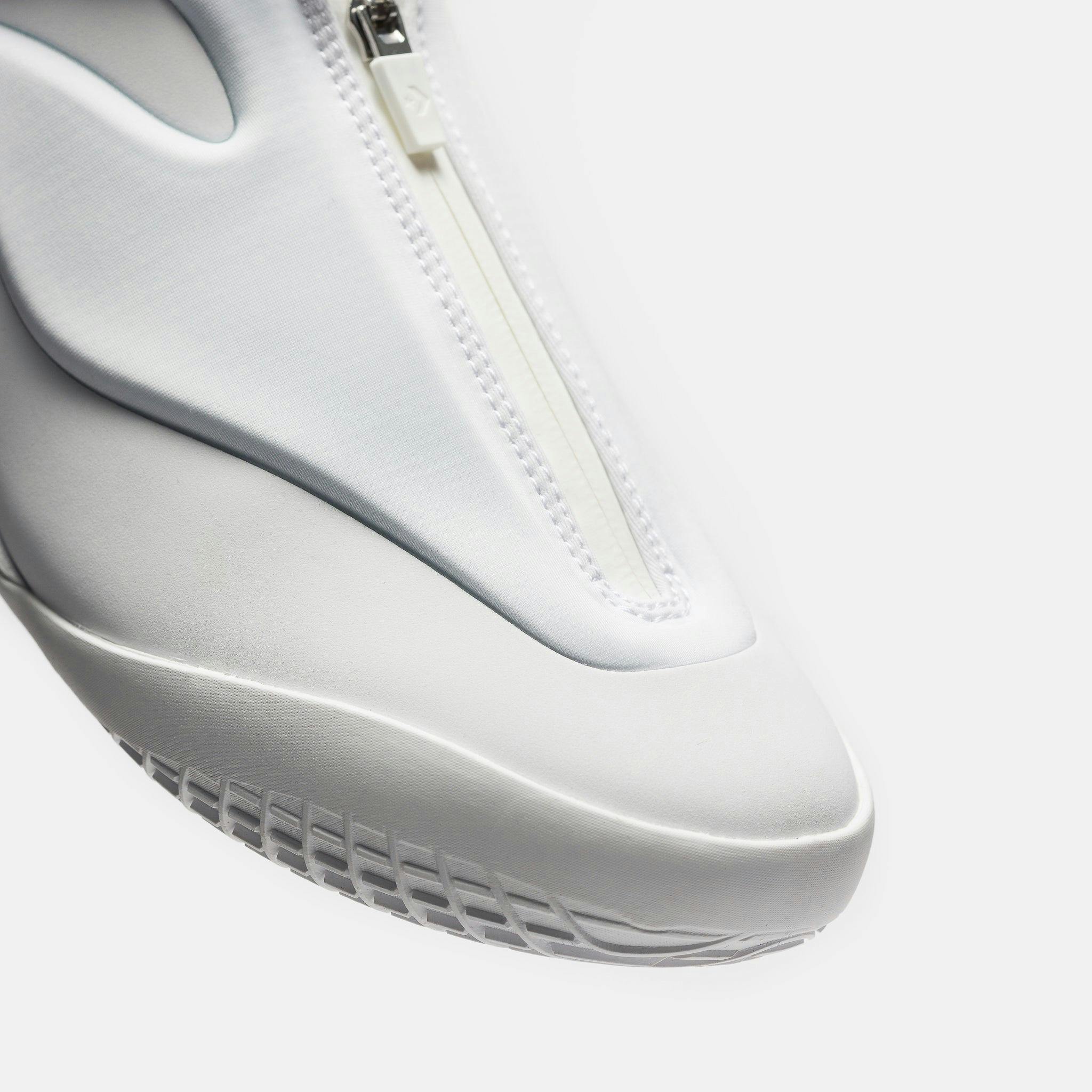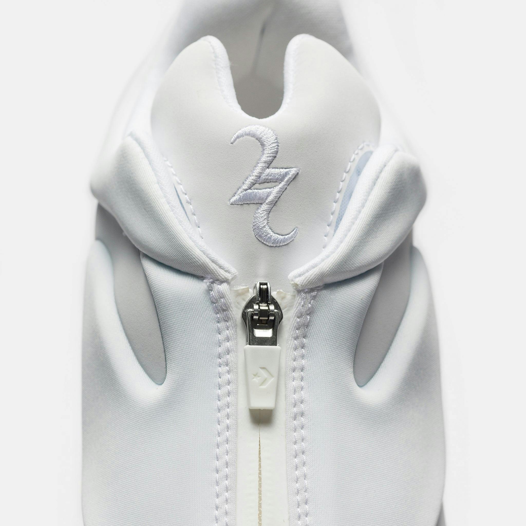 Converse x SGA men’s limited edition standard fit white low top performance basketball sneaker. The Shai 001 Ox is MVP Shai Gilgeous-Alexander's first signature shoe, featuring a Nike Zoom Air Unit in the forefoot, molded upper, and radial underfoot traction. Features: Nike Zoom Air Unit in the forefoot Rounded toe Puffed molded upper Zipper closure with hidden laces Padded tongue featuring Shai's signature logo Radial underfoot traction Rubber midsole Rubber outsole Fabrication: Style # A19934C Made in Vietnam Fit & Sizing: Standard fit US men's sizing